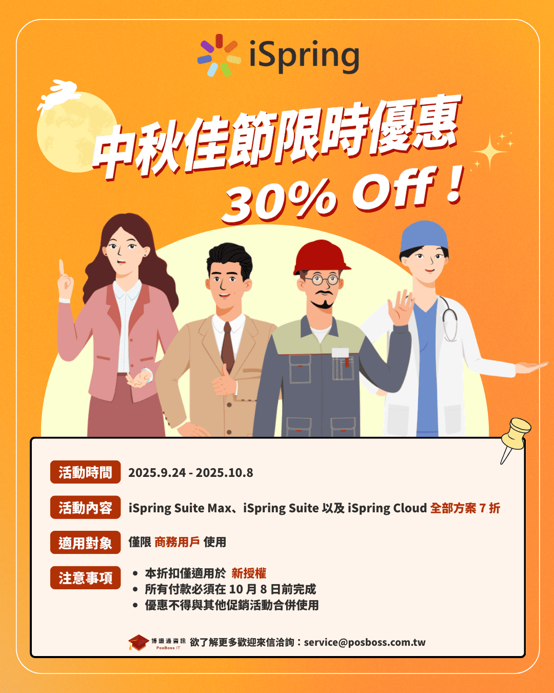 iSpring Suite 中秋佳節限時優惠 – 系列方案 7 折