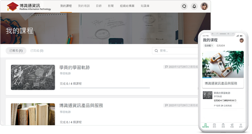 為您的員工、客戶和商業夥伴,提供訓練計畫及學習範籌,以精簡的工作流程管理促進優質的學習品質,即便是在跨部門的組織結構,也能在您設定的範圍內提升學習效能